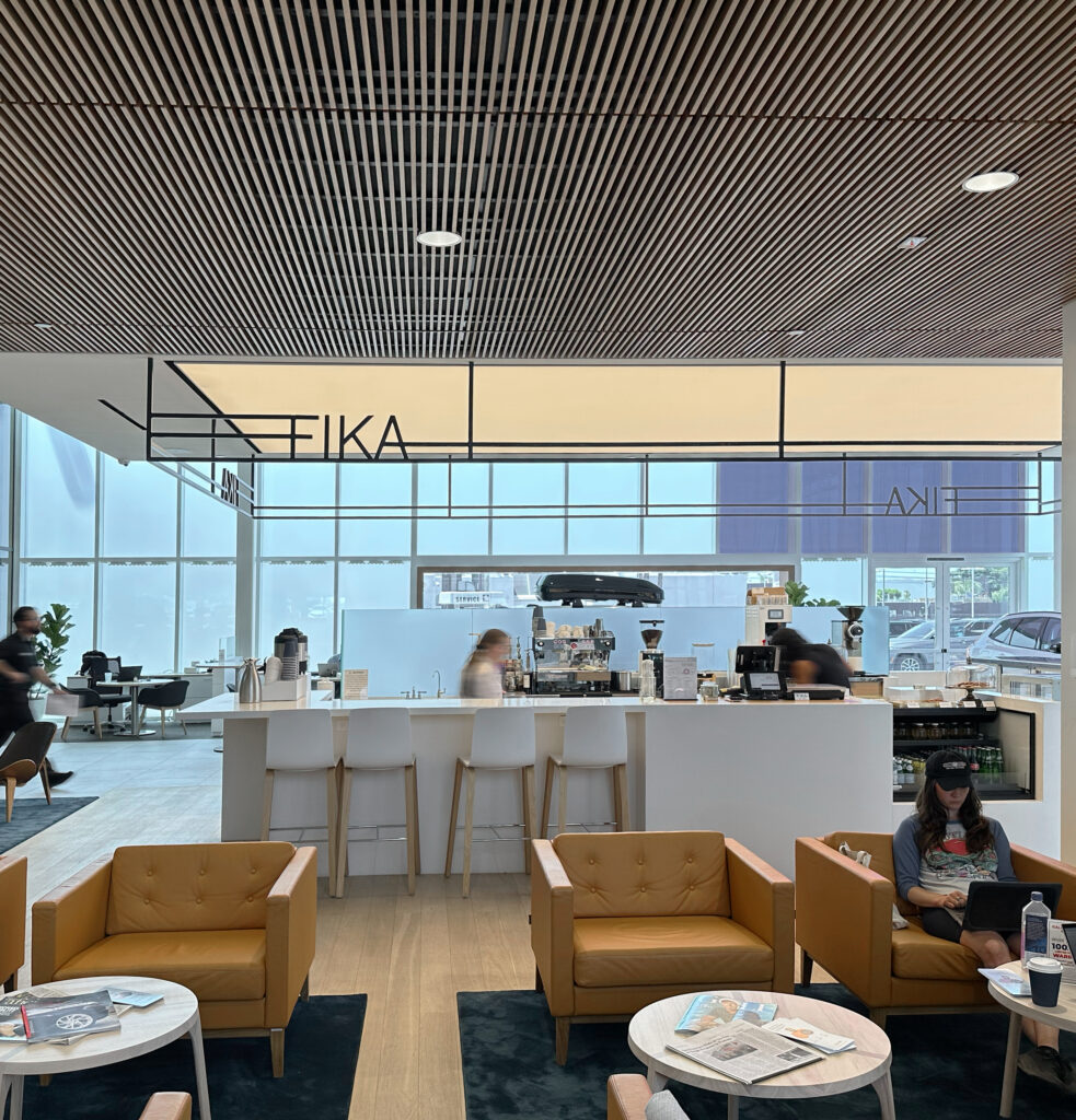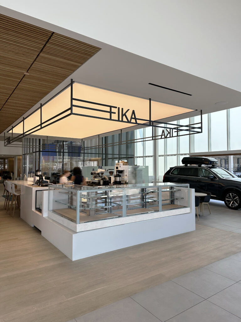In 2024, jD Studio reimagined Galpin’s coffee shop as a Scandinavian- inspired café rooted in the Swedish tradition of fika—celebrating pause, connection, and warmth. The design balances barista workflow and compact spatial constraints with a natural material palette of European oak, warm stone, and matte black finishes. From branding and signage to millwork and mood boards, the project delivers a seamless blend of hospitality and minimalism within a luxury car showroom.
